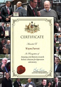 The development of Holistic approaches to the treatment of anxiety and depression, including The Fountainhead Method. A group of about 100 were present including Liberal MP, Teresa Gambaro And Labor Senator for Queensland Mark Furner ensuring bi partisan support.